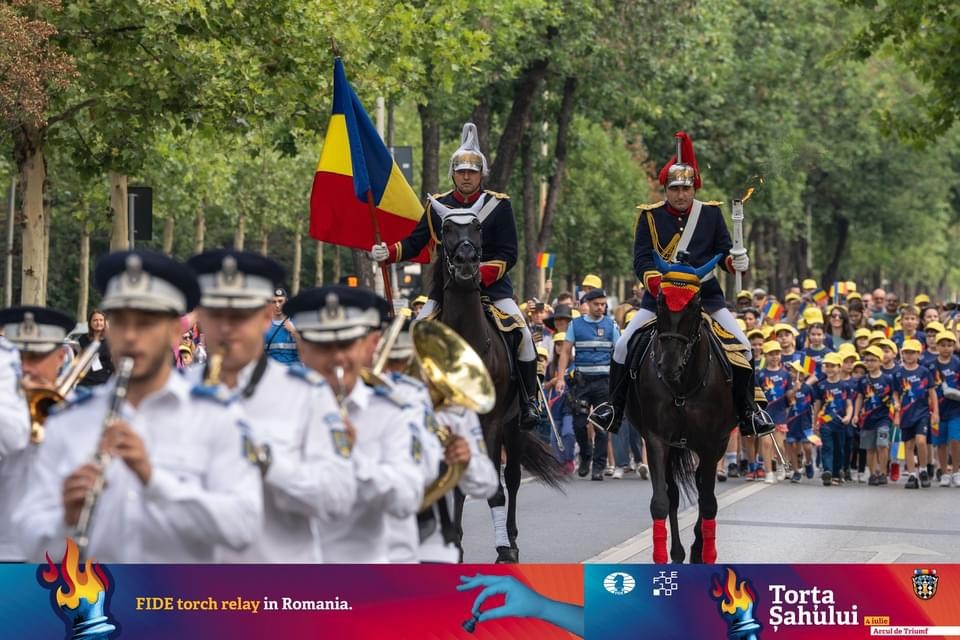 The centennial celebration ceremony will conclude with the lighting of the FIDE torch. The FIDE torch arrives from Romania, where the lighting ceremony was a special event organized at the Arc de Triomphe, with a military band and the presence of over 500 children from around the world. More details about this historical ceremony, you may find here.